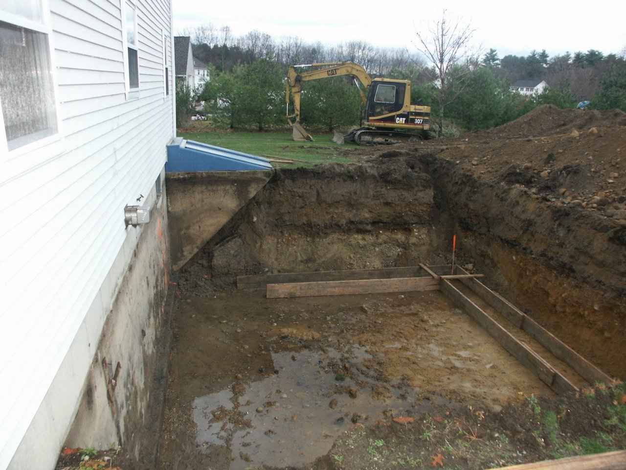 2nd day, footing have been poured Nov 14,2003, If you click on the 3rd picture, you will see markups for the opening from the house to the new family room
